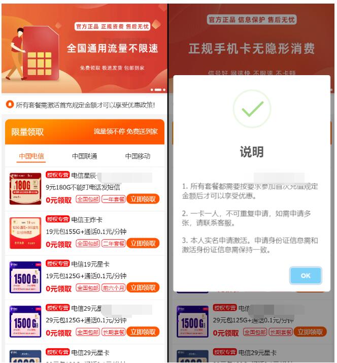 一款号卡推广单页源码,手机自己仿来的卡流,比较简洁,推广带弹窗公告,单页有在做号卡代理推广的源码可以拿去用哈